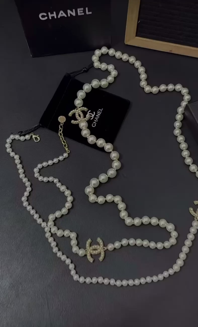 The Pearl CC Long Necklace is a refined statement piece designed for women who appreciate effortless elegance. Crafted to enhance both casual and formal outfits, this necklace features luminous pearls paired with a graceful CC-inspired design that adds a touch of sophistication. Whether layered with other jewelry or worn alone, the Pearl CC Long Necklace brings classic beauty and modern style together in perfect harmony.